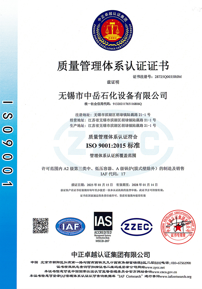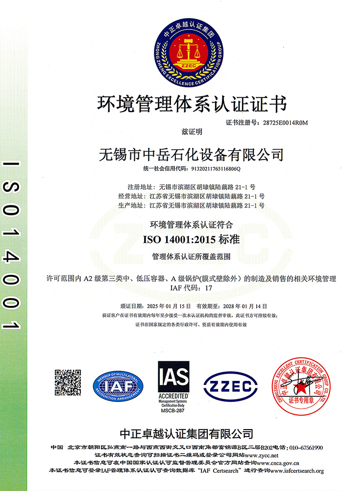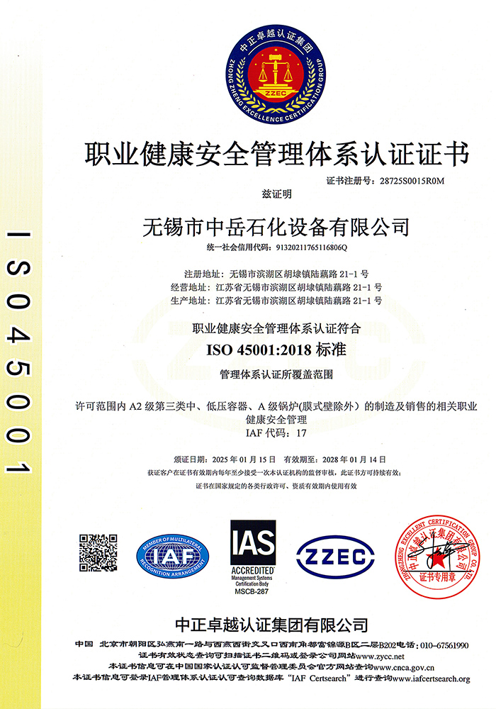 中岳石化下設四個控股子公司——無錫市中岳石化設備有限公司、無錫華凱環(huán)境工程有限公司、山西中岳實業(yè)有限公司、武漢中岳節(jié)能技術有限公司??偛课挥诮洕l(fā)達的長江三角洲,風景秀麗的太湖之濱——無錫市胡埭工業(yè)園區(qū)。是專業(yè)生產石油、化工、醫(yī)藥、染料、冶金、環(huán)保、焦化等行業(yè)用成套設備的專業(yè)公司。公司銀行資信等級4A級,公司注冊資金:3080萬,并獲得江蘇省高新技術企業(yè)、無錫換熱技術工程裝備中心證書,同時也是國內外主要工程公司設計院的合格供應商。